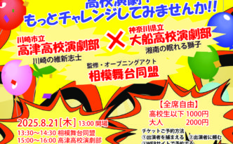 ■公演日程2025.8.21 [木] 13:00 開場13:30~14:30 相模舞台同盟15:00~16:00 高津高校演劇部16:30~17:30 大船高校演劇部17:30~18:00 スタッフ何故何故コーナー ■場 …